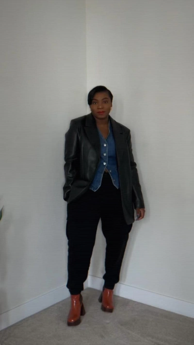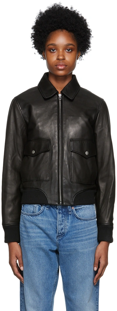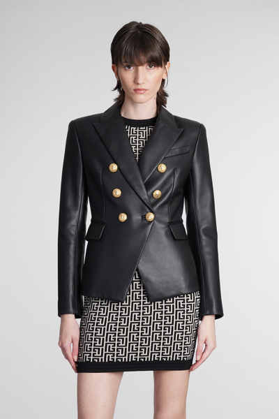 $632 (29% OFF)- $1370Black Leather Double-Breasted Blazer