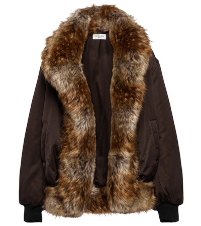 $650 (41% OFF)- $1300Faux Fur-trimmed Satin Bomber Jacket In Chataigne
